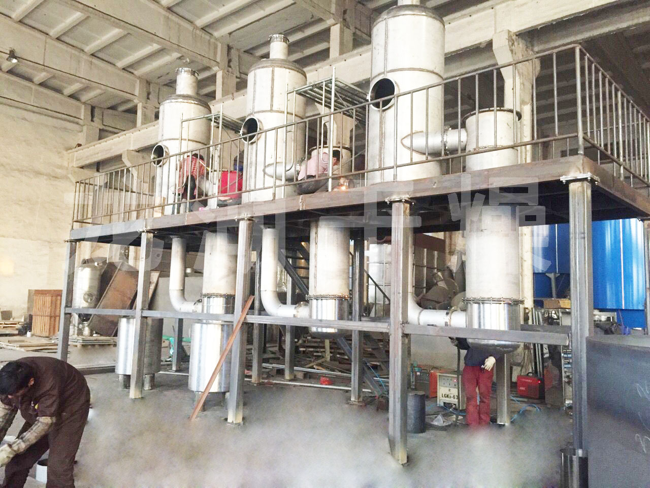 單效或多效降膜蒸發(fā)器,適用于牛奶、葡萄糖、淀粉、木糖、制藥、化工、生物工程、環(huán)保工程、廢液回收等行業(yè)進(jìn)行低溫連續(xù)式蒸發(fā)濃縮,具有傳熱效率高,物料受熱時間短等主要特點,所以特別適用于熱敏性、粘滯性、發(fā)泡性等物料。